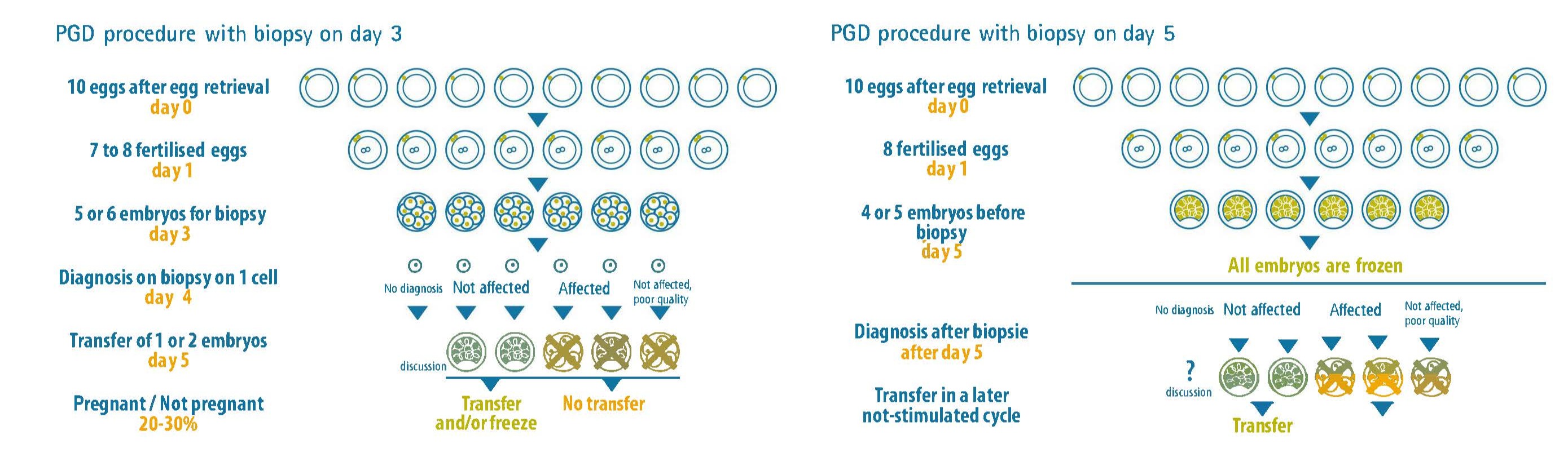 While the diagnosis is made on the cell(s) that is/are removed, in the incubator the biopsied embryos continue to develop, up to day five.