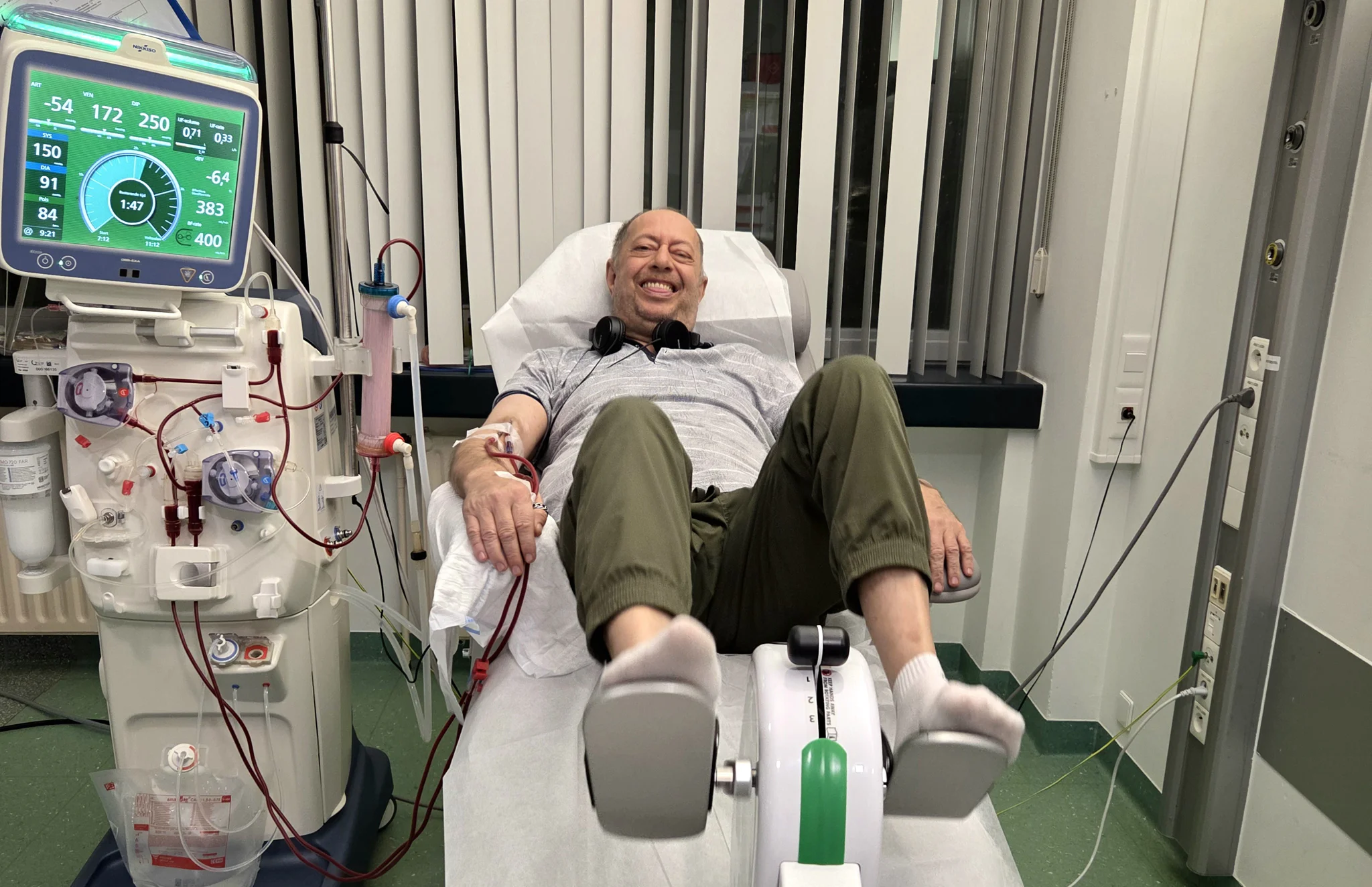Patiënten die hemodialyse ondergaan, brengen doorgaans drie keer per week meerdere uren zittend of liggend door tijdens hun behandeling. Langdurig stilzitten kan bijdragen aan vermoeidheid, spierverlies en een verminderde fysieke conditie. Daarom zet het UZ Brussel in op intradialytische oefentherapie: beweging tijdens de dialysebehandeling zelf.